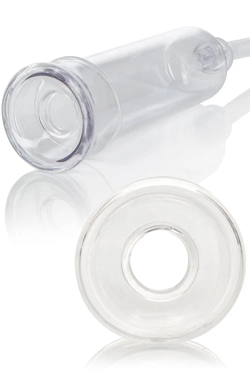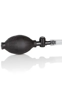 The crystal clear cylindrical pump slides on comfortably and creates perfect suction with each pump of the easy squeeze bulb to gradually increase girth, stamina and sexual pleasure. Features a flanged base for a secure seal, plus a soft and stretchy removable donut.