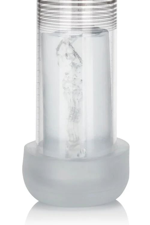 The ultra-thick chamber is anatomically correct for comfort, textured for enhanced sensations, and even magnifies the penis for your viewing pleasure.