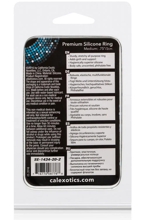 This premium silicone ring from California Exotics is super stretchy and comfortable to use.