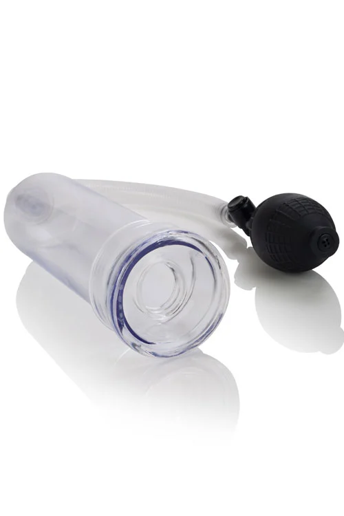The easy-to-use penis pump features a flanged base and removable donut that slides comfortably over the penis. Use the easy squeeze bulb to boost length and girth, and the quick release valve for instant relief.
