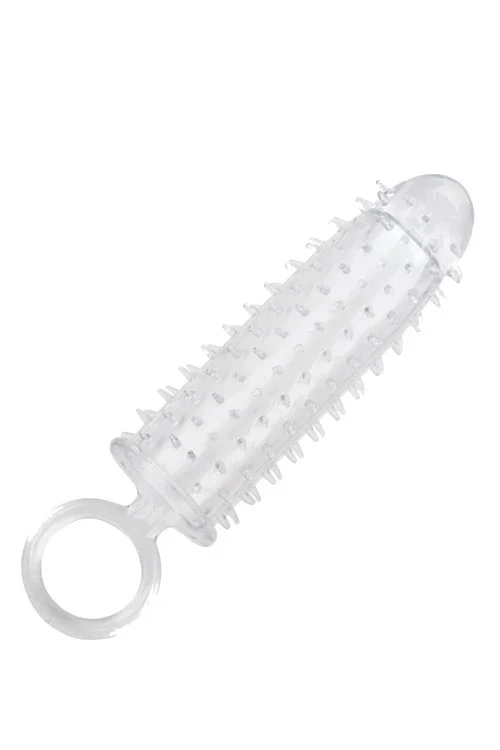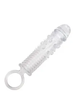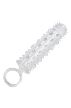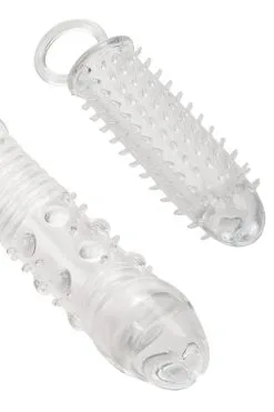 These stretchy sleeves with support rings hug you tightly and enhance stimulation for everyone involved. Thrust to your heart’s content while the raised ticklers, nubs and ridges spark explosive pleasure for both of you. The solid tip even lets you add another inch to your love making, reaching places you haven’t yet explored.