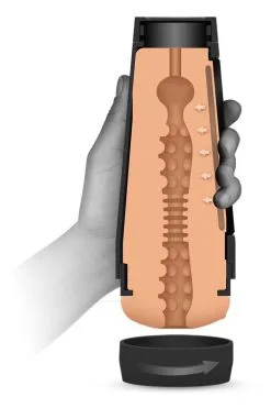 For best results, add a some water based lube to Dani’s pussy, your penis, or both and then grab hold and thrust in. Once you’re done, the second cap on the case allows the toy to fully disassemble for easy cleaning in warm water – just use some mild soap or anti-bacterial toy cleaner and then let it dry fully before reassembling.