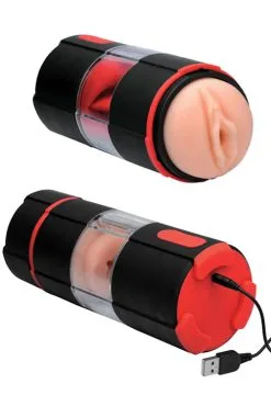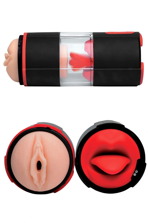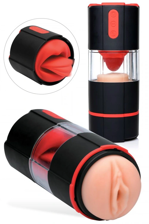 Experience simulated oral and vaginal sex simultaneously, thanks to this deluxe vibrating masturbator which features a realistic pussy entry and flicking tongue.
