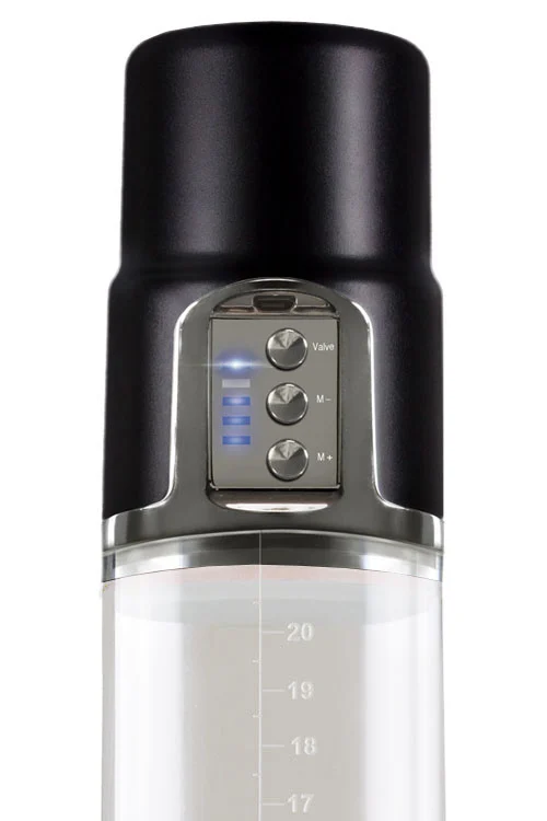 This streamlined penis pump offers pleasure and enhanced performance with constant vacuum suction delivered by a strong yet quiet motor.