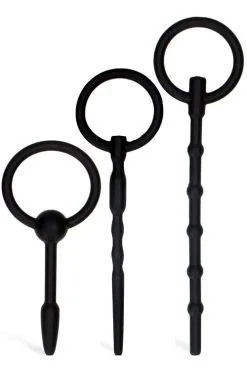 This urethral sounding set includes three different-shaped plugs for incremental progression. Start with the short, narrow plug then gradually move onto the medium-sized option before finishing with the long, wide plug.