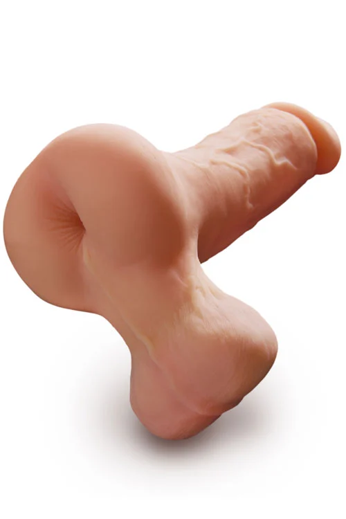 The realistic scrotum contains weighted balls for explosive stroking sensations.