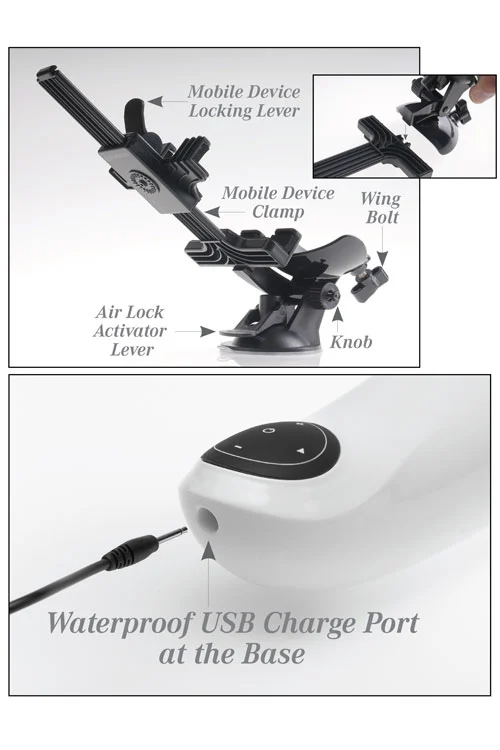 The included mobile device clamp is adjustable to fit most mobile devices allowing you to watch and play simultaneously with ease. The strong suction cup base allows you to attach the device to any flat surface, try in the shower for a wet and wild time!