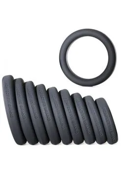 Made of a plush soft touch silicone these rings are premium quality and incredibly strong. For your convenience each ring is stamped with it’s size and a handy storage cone is included.