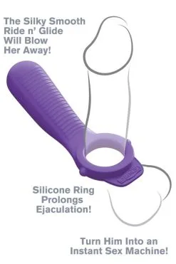 Made from silky smooth silicone that stretches around the shaft for a firm yet comfortable fit, with a ribbed clitoral stimulator to drive her wild as she slides up and down. Use the remote control, attached by a wire, to experience super-powerful vibrations.