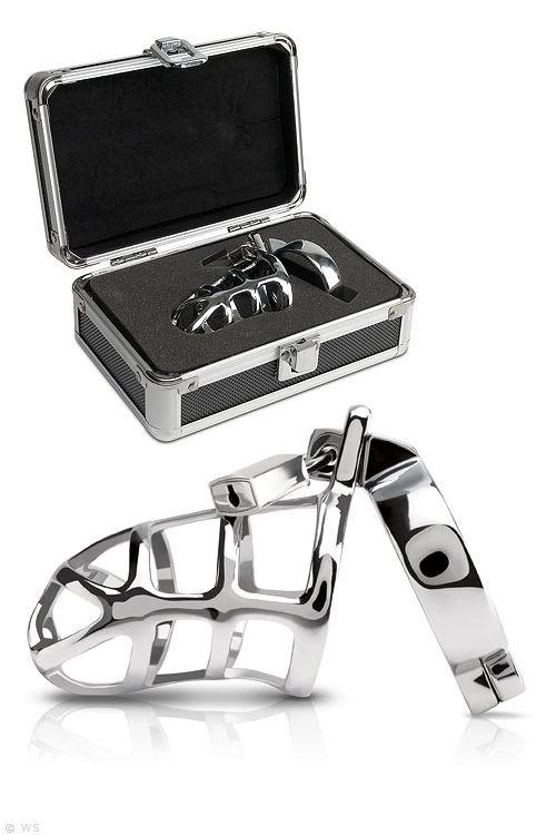 Cast in high quality steel and beautifully hand-polished, this luxurious cock cage combines art and pleasure.