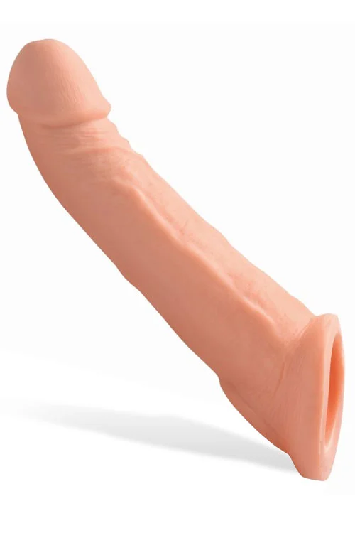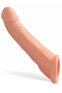 Penis length and girth are instantly increased after slipping the shaft into this comfortably soft sheath and the scrotum into the strap for security during play. The solid tip alone adds an extra tempting inch to your length.